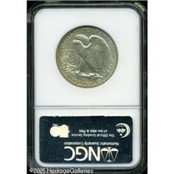<B>1941 50C No "AW" PR67 NGC.</B></I> Pastel gold and rose hues drape this needle-sharp and splendidly preserved Superb Gem. The designer's monogram is completely absent. Presumably, it was inadvertently removed from the reverse die by mint workers during the preparation of the die for striking proofs. Lot:8244