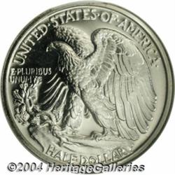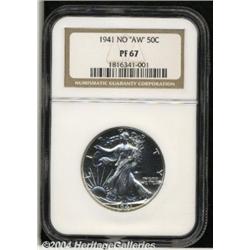 <B>1941<50C> No AW PR67 NGC.</B></I> The designer's monogram is absent, as made from a lapped die. Completely brilliant and highly reflective for this very popular type coin. The surfaces are unabraded and very attractive for the assigned grade. <BR><BR><B>Important notice:</B> Heritage usually auctions material at the rate of 200-250 lots per hour. On some occasions eBay Live bid software or the Internet may not be able to keep up with the pace of the auction. We recommend placing a realistic absentee bid now as insurance to avoid disappointment. Occasionally the auctioneer may eliminate or reject an eBay Live bid, and the auctioneer may also reopen a lot after the close of the eBay live bidding (usually because we missed an audience bid), and may reject your bid even if it shows you as the winning bidder. By bidding via eBay Live, you agree that Heritage may award the lot to another bidder at its sole discretion under the circumstances described above or any other reasonable circumstances. Since eBay bids are not shown to us until we open the lot on the floor, we treat those bids just like floor bids. In most cases the floor responds before the eBay bid is presented to us, due to Internet lag time, so for consistency we have made it a policy that floor bids are always considered first over tie eBay live bids. Also please note that all Heritage lots purchased through eBay Live carry a 20% Buyer's Premium. Please make sure you read the Terms and Conditions before you bid. </span></font></tr></table></td></tr></table>