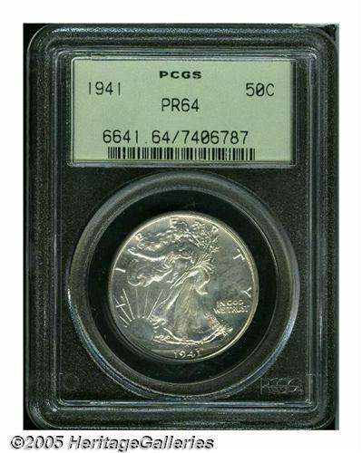 <B>1941<50C> PR64 PCGS.</B></I> Fully brilliant and deeply mirrored with dusky toning in the fields, attesting to the originality of this lovely half dollar. Just a hint of cameo contrast adds to the eye appeal and importance of this opportunity.