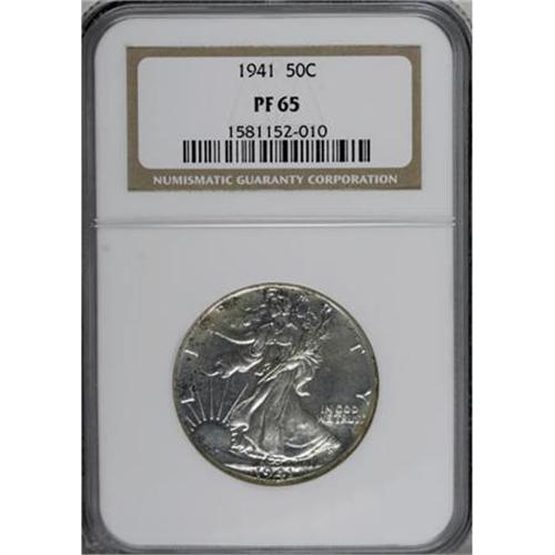 <B>1941 50C PR65 NGC.</B></I> NGC Census: (756/1306). PCGS Population (1328/1165). Mintage: 15,412. Numismedia Wsl. Price for NGC/PCGS coin in PR65: $600. (#6641)<BR><BR><B>Coin Engraver:</B> Adolph A. Weinman<BR><BR><b>Shipping:</b> Coins & Currency (<a target="_blank" href="http://www.heritageauctions.com/common/shipping.php">view shipping information</a>)