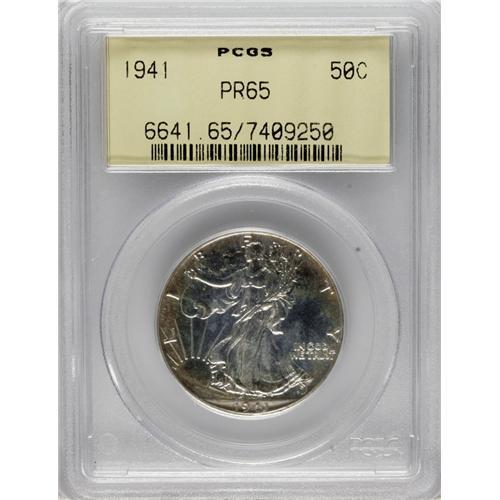 <B>1941 50C PR65 PCGS.</B></I> Dusky yellow-tan toning gravitates to the margins of this sharply struck Gem. Close inspection with a glass reveals no significant marks. A truly beautiful Gem proof Walker.<BR><BR><b>Shipping:</b> Coins & Currency (<a target="_blank" href="http://www.heritageauctions.com/common/shipping.php">view shipping information</a>)