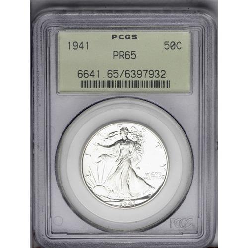 1941 50C PR65 PCGS. No AW. This sharply struck Gem is 1941[50C] PR65 PCGS.