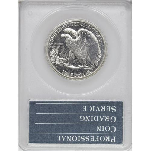 <B>1941 50C PR65 PCGS.</B></I> No AW monogram. This flashy and nearly brilliant Gem is encased in a first generation holder. Sharply struck, and the obverse has mild cameo contrast. The presence or absence of the designer's monogram is noted in the 2007 <I>Guide Book,</B></I> and future numismatists may attempt to include both varieties.<BR><BR><b>Shipping:</b> Coins & Currency (<a target="_blank" href="http://www.heritageauctions.com/common/shipping.php">view shipping information</a>)