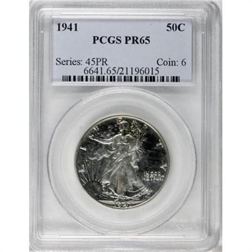 <B>1941 50C PR65 PCGS.</B></I> No AW. A flashy and lightly toned proof type coin that has a meticulous strike and imposing eye appeal.<BR><BR><B>Coin Engraver:</B> Adolph A. Weinman<BR><BR><b>Shipping:</b> Coins & Currency (<a target="_blank" href="http://www.heritageauctions.com/common/shipping.php">view shipping information</a>)