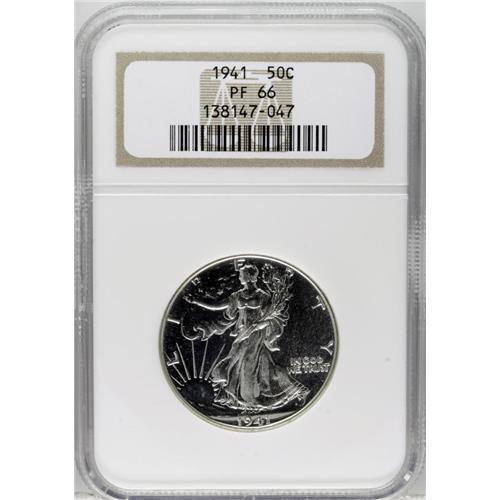 <B>1941 50C PR66 NGC.</B></I> A gleaming and well-preserved example of this penultimate proof Walking Liberty half. Exquisitely struck with modest haze in the right obverse field.<BR><BR><b>Shipping:</b> Coin/Currency (<a target="_blank" href="http://www.heritageauctions.com/common/shipping.php">view shipping information</a>)