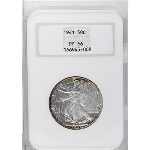 1941 50C PR66 NGC. Attractive orange-gold and sea-gree