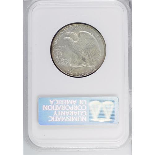<B>1941 50C PR66 NGC.</B></I> Attractive orange-gold and sea-green grace the obverse margin, while the reverse is dusky tan-gray with a peach rim. A well struck and exquisite Premium Gem. The AW monogram exists only as a ghostly outline. Certified in an older generation holder.<BR><BR><b>Shipping:</b> Coin/Currency (<a target="_blank" href="http://www.heritageauctions.com/common/shipping.php">view shipping information</a>)