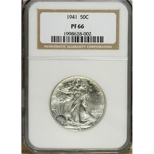 <B>1941 50C PR66 NGC.</B></I> Crisply struck design motifs and glassy fields are seen on the surfaces of this sparkling Premium Gem proof. Completely free of contact marks and hairlines, with a light coating of dappled, milky patina on both sides.<BR><BR><b>Shipping:</b> Coins & Currency (<a target="_blank" href="http://www.heritageauctions.com/common/shipping.php">view shipping information</a>)