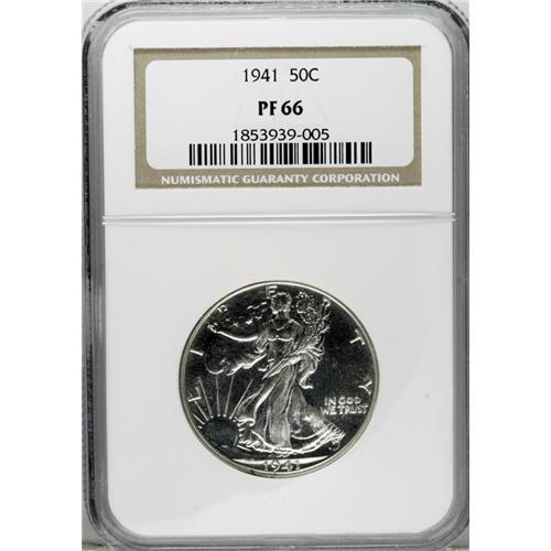 <B>1941 50C PR66 NGC.</B></I> Highly reflective with just a hint of haze on each side. This silver-gray Premium Gem has a touch of champagne patina near the rims and exceptional detail.<BR><BR><b>Shipping:</b> Coins & Currency (<a target="_blank" href="http://www.heritageauctions.com/common/shipping.php">view shipping information</a>)