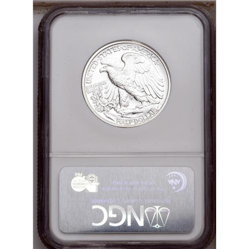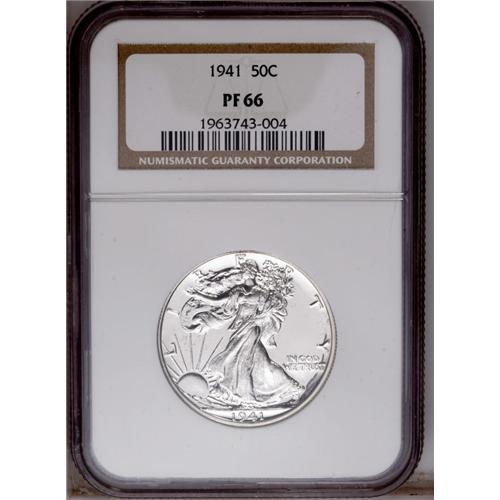 <B>1941<50C> PR66 NGC.</B></I> The designer's monogram is present on this essentially brilliant Premium Gem. The glassy fields are void of hairlines. Exquisitely struck, even on Liberty's waist.