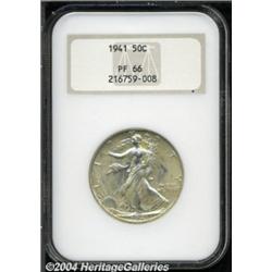 <table><tr><td><TABLE cellSpacing=0 cellPadding=0 width="100%" bgColor=#000000 border=0><TBODY> <TR><TD width="100%"><TABLE cellSpacing=1 cellPadding=3 width="100%" border=0><TBODY><TR><TD width="100%" bgColor=#79735c><FONT face=arial color=#ffffff size=3><B>Description</B> </FONT></TD></TR><TR><TD width="100%" bgColor=#ffffff><FONT face=arial size=2><B>1941 50C PR66 NGC.</B></I> Milky tan and silver-gray patina visits this needle-sharp and lovingly preserved Gem. The designer's monogram is not present, as produced from a lapped reverse die. </FONT></TD></TR></TBODY></TABLE></TD></TR></TBODY></TABLE><BR><A name=PricesRealized></A><TABLE cellSpacing=0 cellPadding=0 width="100%" bgColor=#000000 border=0><TBODY><TR><TD width="100%"><TABLE cellSpacing=1 cellPadding=3 width="100%" border=0><TBODY><TR><TD width="100%" bgColor=#79735c><A name=PR><FONT face=arial color=#ffffff size=3><B>Previous Prices from Heritage Auctions</B> </FONT></A></TD></TR><TR><TD bgColor=#f6f6ed><TABLE cellSpacing=0 cellPadding=0 width="100%" border=1><TBODY><TR><TD align=middle width="33%"><B>Date</B></TD><TD align=middle width="33%"><B>Service</B></TD><TD align=middle width="33%"><B>Price</B></TD></TR><TR bgColor=whitesmoke><TD width="33%"><B>11/11/2003</B></TD><TD width="33%">NGC</TD><TD width="33%">$632.50</TD></TR><TR bgColor=whitesmoke><TD width="33%"><B>10/07/2003</B></TD><TD width="33%">PCGS</TD><TD width="33%">$640.55</TD></TR><TR bgColor=whitesmoke><TD width="33%"><B>07/01/2003</B></TD><TD width="33%">PCGS</TD><TD width="33%">$690.00</TD></TR><TR bgColor=whitesmoke><TD width="33%"><B>06/03/2003</B></TD><TD width="33%">NGC</TD><TD width="33%">$718.75</TD></TR><TR bgColor=whitesmoke><TD width="33%"><B>02/11/2003</B></TD><TD width="33%">PCGS</TD><TD width="33%">$805.00</TD></TR><TR bgColor=whitesmoke><TD width="33%"><B>12/31/2002</B></TD><TD width="33%">NGC</TD><TD width="33%">$776.25</TD></TR><TR bgColor=whitesmoke><TD width="33%"><B>03/05/2002</B></TD><TD width="33%">PCGS</TD><TD width="33%">$661.25</TD></TR><TR bgColor=whitesmoke><TD width="33%"><B>10/16/2001</B></TD><TD width="33%">PCGS</TD><TD width="33%">$525.00</TD></TR><TR bgColor=whitesmoke><TD width="33%"><B>07/17/2001</B></TD><TD width="33%">NGC</TD><TD width="33%">$480.00</TD></TR><TR bgColor=whitesmoke><TD width="33%"><B>07/03/2001</B></TD><TD width="33%">PCGS</TD><TD width="33%">$420.00</TD></TR><TR bgColor=whitesmoke><TD width="33%"><B>01/07/2004</B></TD><TD width="33%">PCGS</TD><TD width="33%">$690.00</TD></TR><TR bgColor=whitesmoke><TD width="33%"><B>09/20/2003</B></TD><TD width="33%">NGC</TD><TD width="33%">$460.00</TD></TR><TR bgColor=whitesmoke><TD width="33%"><B>09/20/2003</B></TD><TD width="33%">PCGS</TD><TD width="33%">$833.75</TD></TR><TR bgColor=whitesmoke><TD width="33%"><B>07/29/2003</B></TD><TD width="33%">NGC</TD><TD width="33%">$632.50</TD></TR><TR bgColor=whitesmoke><TD width="33%"><B>03/23/2003</B></TD><TD width="33%">PCGS</TD><TD width="33%">$862.50</TD></TR><TR bgColor=whitesmoke><TD width="33%"><B>11/25/2002</B></TD><TD width="33%">PCGS</TD><TD width="33%">$920.00</TD></TR><TR bgColor=whitesmoke><TD width="33%"><B>11/15/2001</B></TD><TD width="33%">PCGS</TD><TD width="33%">$575.00</TD></TR><TR bgColor=whitesmoke><TD width="33%"><B>08/05/2001</B></TD><TD width="33%">PCGS</TD><TD width="33%">$500.25</TD></TR><TR bgColor=whitesmoke><TD width="33%"><B>08/05/2001</B></TD><TD width="33%">NGC</TD><TD width="33%">$471.50</TD></TR><TR bgColor=whitesmoke><TD width="33%"><B>02/23/2001</B></TD><TD width="33%">NGC</TD><TD width="33%">$402.50</TD></TR><TR bgColor=whitesmoke><TD width="33%"><B>05/05/2000</B></TD><TD width="33%">NGC</TD><TD width="33%">$379.50</TD></TR><TR bgColor=whitesmoke><TD width="33%"><B>06/05/1999</B></TD><TD width="33%">PCGS</TD><TD width="33%">$397.10</TD></TR><TR bgColor=whitesmoke><TD width="33%"><B>09/13/1997</B></TD><TD width="33%">PCGS</TD><TD width="33%">$310.50</TD></TR><TR bgColor=whitesmoke><TD width="33%"><B>10/04/1997</B></TD><TD width="33%">PCGS</TD><TD width="33%">$297.00</TD></TR><TR bgColor=whitesmoke><TD width="33%"><B>05/02/1997</B></TD><TD width="33%">PCGS</TD><TD width="33%">$374.00</TD></TR><TR bgColor=whitesmoke><TD width="33%"><B>09/18/1996</B></TD><TD width="33%">PCGS</TD><TD width="33%">$374.00</TD></TR><TR bgColor=whitesmoke><TD width="33%"><B>01/06/1996</B></TD><TD width="33%">PCGS</TD><TD width="33%">$374.00</TD></TR><TR bgColor=whitesmoke><TD width="33%"><B>12/09/1994</B></TD><TD width="33%">PCGS</TD><TD width="33%">$484.00</TD></TR><TR bgColor=whitesmoke><TD width="33%"><B>07/30/1994</B></TD><TD width="33%">PCGS</TD><TD width="33%">$451.00</TD></TR><TR bgColor=whitesmoke><TD width="33%"><B>07/31/1993</B></TD><TD width="33%">PCGS</TD><TD width="33%">$605.00</TD></TR><TR bgColor=whitesmoke><TD width="33%"><B>02/03/1993</B></TD><TD width="33%">NGC</TD><TD width="33%">$451.00</TD></TR><TR bgColor=whitesmoke><TD width="33%"><B>03/01/2000</B></TD><TD width="33%">PCGS</TD><TD width="33%">$575.00</TD></TR></TBODY></TABLE></TD></TR><TR><TD bgColor=#ffffff><FONT face=arial size=1 ?>PLEASE NOTE: All prices realized reflect the final hammer price PLUS the buyer's premium in auctions that charge a buyer's premium. Each item has a notation at the top of the listing indicating whether that lot included a buyer's premium. Example: A item that sells with a final hammer price of $100 and a 20% buyer's premium will display with a price realized of $120. All information listed is intended to be as accurate as possible, but errors are possible. Please use this guide carefully and inform us of any inaccuracies. </FONT></TD></TR></TBODY></TABLE></TD></TR></TBODY></TABLE><BR><TABLE cellSpacing=0 cellPadding=0 width="100%" bgColor=#000000 border=0><TBODY><TR><TD width="100%"><TABLE cellSpacing=1 cellPadding=3 width="100%" border=0><TBODY><TR><TD width="100%" bgColor=#79735c colSpan=6><FONT face=arial color=#ffffff size=3><B>Price Guide*</B> </FONT></TD></TR><TR bgColor=#f6f6ed><TD align=middle><B>Grade</B> </TD><