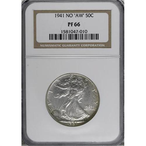 <B>1941 50C PR66 NGC.</B></I> No AW. Glimpses of apricot toning enrich this otherwise ivory-gray Premium Gem. A loupe confirms the absence of hairlines. The design highpoints are penetratingly struck.<BR><BR><B>Coin Engraver:</B> Adolph A. Weinman<BR><BR><b>Shipping:</b> Coins & Currency (<a target="_blank" href="http://www.heritageauctions.com/common/shipping.php">view shipping information</a>)