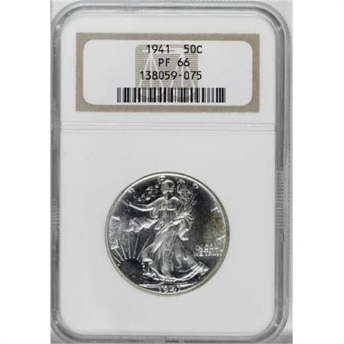 <B>1941 50C PR66 NGC.</B></I> The chromelike brilliance of this Premium Gem is nearly as impressive as its overall preservation. A sharply struck and highly appealing survivor from this popular later proof Walker issue.<BR><BR><B>Coin Engraver:</B> Adolph A. Weinman<BR><BR><b>Shipping:</b> Coins & Currency (<a target="_blank" href="http://www.heritageauctions.com/common/shipping.php">view shipping information</a>)