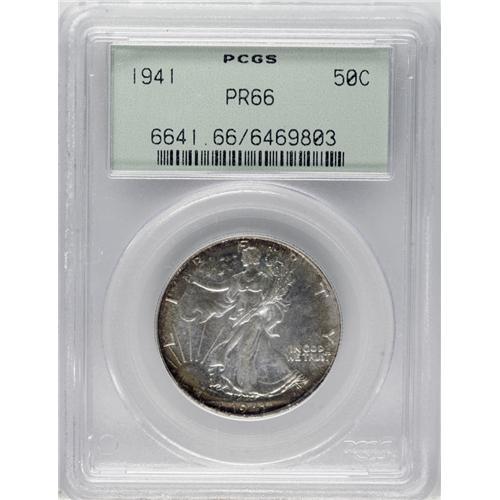 <B>1941 50C PR66 PCGS.</B></I> Ruby-red and honey-gold margins frame the nearly brilliant centers. A well struck and original high grade proof type coin. The AW monogram is very faint but technically present. Encased in a green label holder.<BR><BR><b>Shipping:</b> Coins & Currency (<a target="_blank" href="http://www.heritageauctions.com/common/shipping.php">view shipping information</a>)