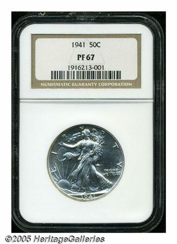 <B>1941<50C> PR67 NGC.</B></I> Dazzling, untoned mirrors are virtually as made. These War-era Walking Liberty proofs are not rare in the truest sense, but demand for this classic 20th century issue is ceaseless.