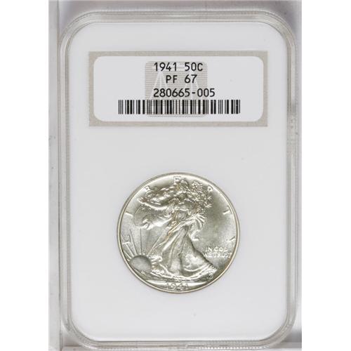 <B>1941<50C> PR67 NGC.</B></I> Minimally toned with distraction-free mirrors and sharply struck devices. An excellent candidate for inclusion in a high-end proof type set.