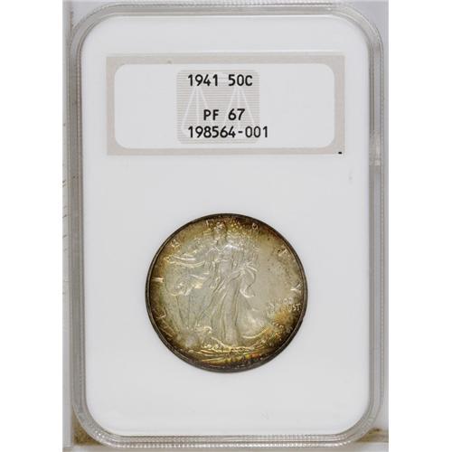 1941 50C PR67 NGC. Vivid multicolored toning gravitate