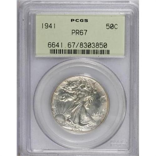 <B>1941 50C PR67 PCGS.</B></I> PCGS Population (265/13). NGC Census: (389/61). Mintage: 15,412. Numismedia Wsl. Price for NGC/PCGS coin in PR67: $1,000. (#6641)<BR><BR><B>Coin Engraver:</B> Adolph A. Weinman<BR><BR><b>Shipping:</b> Coins & Currency (<a target="_blank" href="http://www.heritageauctions.com/common/shipping.php">view shipping information</a>)