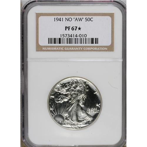 <B>1941 50C PR67 <img border='0' src='http://www.heritagecoins.com/images/star.gif' width=10 height=10> NGC.</B></I> No AW initials. A brilliant Superb Gem that has substantial frost across the devices. The glassy fields are remarkably void of hairlines. An exemplary contribution to a proof type set.<BR><BR><b>Shipping:</b> Coins & Currency (<a target="_blank" href="http://www.heritageauctions.com/common/shipping.php">view shipping information</a>)