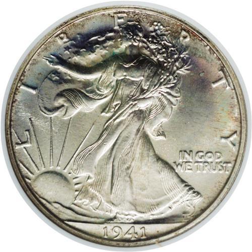 <B>1941<50C> PR68 NGC.</B></I> Stunning light silver-gold surfaces show scattered tinges of amber, jade-green, lilac, and ice-blue. This fully struck Superb Gem is free of any visible contact evidence or impairment of any kind. Tied for the finest at either service with a few dozen other pieces (9/06).
