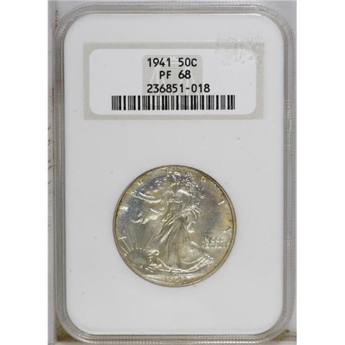 1941 50C PR68 NGC. Stunning light silver-gold surfaces