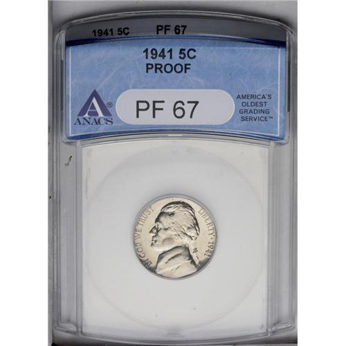 1941 5C PR67 ANACS. A brilliant Superb proof with fain 1941[5C] PR67 ANACS.