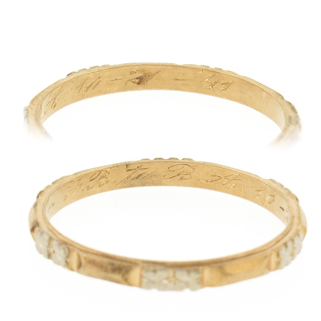 An antique solid 14k yellow & white gold band ring. The ring is size 7.0, weighs a total of 1.40 grams, and measures 2.1mm wide.
