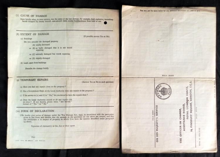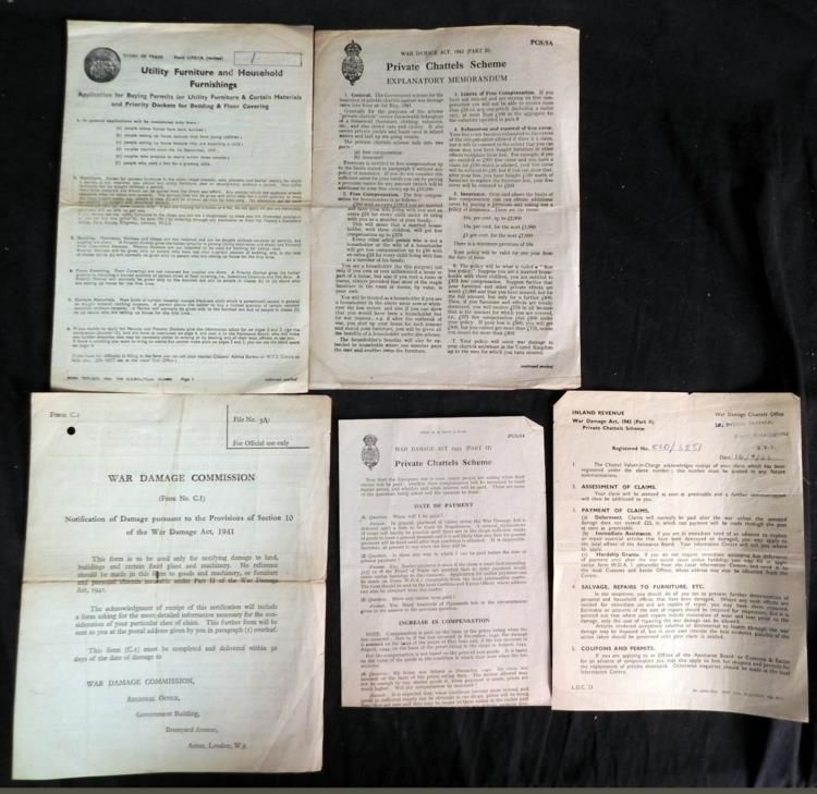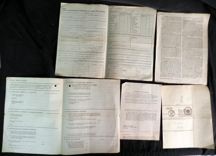 1941 BRITISH "WAR DAMAGE ACT" REPORTS FOR MONETARY GOVT REPAYMENT-5 DOCS---SCARCE PAPERWORK FROM THE 1940'S BRITAIN FOR REPARATION OF WAR DAMAGE CAUSED BY THE NAZIS-5 DOCUMENTS