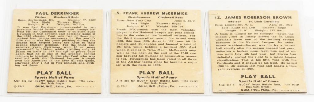 1941 Baseball cards Simmy Brown, Buck McCormick, Duck Derringer