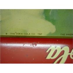 1941 Coca-Cola advertising tray. Good overall condition. Depicts woman on log with ice skates. 10.5" x 13"