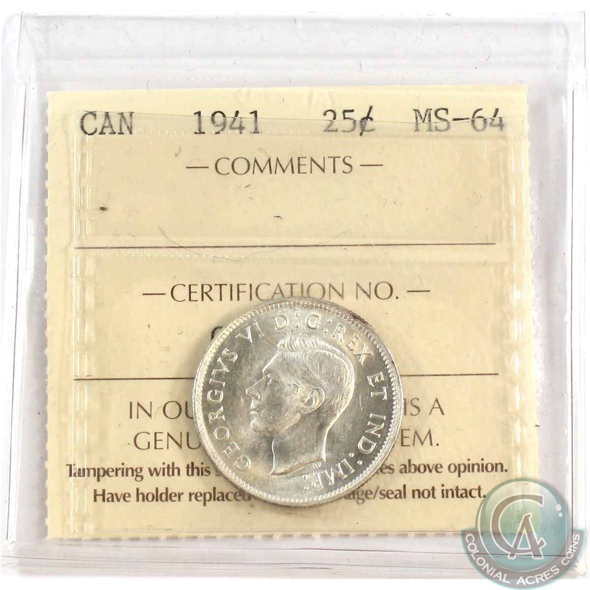 1941 Canada 25-cent ICCS Certified MS-64
