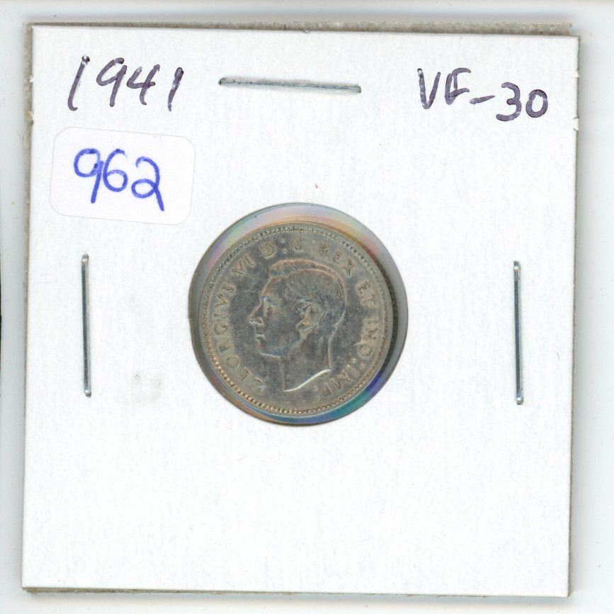 1941 Canadian Silver 10 Cents. World War II issue. VF-30.