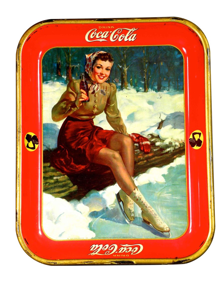 1941 Coca Cola Tin Serving Tray. Edge ware, minor surface scratches and scuffs at left shoulder otherwise good condition. 10 1/2 X 13 1/4 inches.