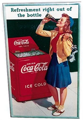 16"x27". Girl with skates by cooler. Very clean overall with some upper horizontal central light rubbing. Lower left corner bend. No marks to speak of otherwise. Some minor ripples and delamination the top 5". Still strong cond. at 8.3-8.6+.