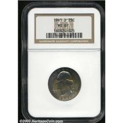 <TABLE cellSpacing=0 cellPadding=0 width="100%" bgColor=#000000 border=0><TBODY><TR><TD width="100%"><TABLE cellSpacing=1 cellPadding=3 width="100%" border=0><TBODY><TR><TD width="100%" bgColor=#79735c><FONT face=arial color=#ffffff size=3><B>Description</B> </FONT></TD></TR><TR><TD width="100%" bgColor=#ffffff><FONT face=arial size=2><B>1941-D 25C MS67 NGC.</B></I> Variegated rainbow iridescence blankets each side of this marvelous Superb Gem, which is fully struck and virtually mark-free. Too many colors are on display to list them individually. Population: 84 in 67, 1 finer (7/03). </FONT></TD></TR></TBODY></TABLE></TD></TR></TBODY></TABLE><BR><A name=PricesRealized></A><TABLE cellSpacing=0 cellPadding=0 width="100%" bgColor=#000000 border=0><TBODY><TR><TD width="100%"><TABLE cellSpacing=1 cellPadding=3 width="100%" border=0><TBODY><TR><TD width="100%" bgColor=#79735c><A name=PR><FONT face=arial color=#ffffff size=3><B>Previous Prices from Heritage Auctions</B> </FONT></A></TD></TR><TR><TD bgColor=#f6f6ed><TABLE cellSpacing=0 cellPadding=0 width="100%" border=1><TBODY><TR><TD align=middle width="33%"><B>Date</B></TD><TD align=middle width="33%"><B>Service</B></TD><TD align=middle width="33%"><B>Price</B></TD></TR><TR bgColor=whitesmoke><TD width="33%"><B>05/05/2003</B></TD><TD width="33%">NGC</TD><TD width="33%">$224.25</TD></TR><TR bgColor=whitesmoke><TD width="33%"><B>03/03/2003</B></TD><TD width="33%">NGC</TD><TD width="33%">$132.25</TD></TR><TR bgColor=whitesmoke><TD width="33%"><B>01/11/2003</B></TD><TD width="33%">NGC</TD><TD width="33%">$517.50</TD></TR><TR bgColor=whitesmoke><TD width="33%"><B>04/07/2001</B></TD><TD width="33%">NGC</TD><TD width="33%">$172.50</TD></TR><TR bgColor=whitesmoke><TD width="33%"><B>03/01/2003</B></TD><TD width="33%">NGC</TD><TD width="33%">$270.25</TD></TR></TBODY></TABLE></TD></TR><TR><TD bgColor=#ffffff><FONT face=arial size=1 ?>PLEASE NOTE: All prices realized reflect the final hammer price PLUS the buyer's premium in auctions that charge a buyer's premium. Each item has a notation at the top of the listing indicating whether that lot included a buyer's premium. Example: A item that sells with a final hammer price of $100 and a 20% buyer's premium will display with a price realized of $120. All information listed is intended to be as accurate as possible, but errors are possible. Please use this guide carefully and inform us of any inaccuracies. </FONT></TD></TR></TBODY></TABLE></TD></TR></TBODY></TABLE><BR><TABLE cellSpacing=0 cellPadding=0 width="100%" bgColor=#000000 border=0><TBODY><TR><TD width="100%"><TABLE cellSpacing=1 cellPadding=3 width="100%" border=0><TBODY><TR><TD width="100%" bgColor=#79735c colSpan=6><FONT face=arial color=#ffffff size=3><B>Price Guide*</B> </FONT></TD></TR><TR bgColor=#f6f6ed><TD align=middle><B>Grade</B> </TD><TD align=middle><B>Coin World<BR>(Trends)</B> </TD><TD align=middle><B>Numismedia<BR>Retail</B> </TD><TD align=middle><B>Numismedia<BR>Wholesale</B> </TD><TD align=middle><B>Coin<BR>Universe</B> </TD><TD align=middle><B>Heritage<BR>Value Index</B> </TD></TR><TR bgColor=#ffffff><TD align=middle>66</TD><TD align=right>---</TD><TD align=right>$105.00</TD><TD align=right>$84.00</TD><TD align=right>$230.00</TD><TD align=right>$103.50</TD></TR><TR style="FONT-WEIGHT: bold" bgColor=#cccfdd><TD align=middle>67</TD><TD align=right>---</TD><TD align=right>$293.00</TD><TD align=right>$225.00</TD><TD align=right>$4,750.00</TD><TD align=right>$3,325.00</TD></TR><TR bgColor=#ffffff><TD align=middle>68</TD><TD align=right>---</TD><TD align=right>---</TD><TD align=right>---</TD><TD align=right>---</TD><TD align=right>---</TD></TR><TR bgColor=#ffffff><TD colSpan=6><FONT size=1>*All information listed is intended to be as accurate as possible, but errors are possible. No item may be returned or refused based on this information which is provided as a service to our customers. You should contact each pricing source directly to determine the accuracy of this information. </FONT></TD></TR></TBODY></TABLE></TD></TR></TBODY></TABLE><BR><TABLE cellSpacing=0 cellPadding=0 width="100%" bgColor=#000000 border=0><TBODY><TR><TD width="100%"><TABLE cellSpacing=1 cellPadding=3 width="100%" border=0><TBODY><TR><TD width="100%" bgColor=#79735c><FONT face=arial color=#ffffff size=3><B>Population Guide</B> </FONT></TD></TR><TR bgColor=#ffffff><TD align=middle><!-- Begin Output of Population Grid--><TABLE cellSpacing=0 cellPadding=0 width="100%" border=0><TBODY><TR><TD vAlign=center><TABLE cellSpacing=0 width="100%" border=1 cellsadding="3"><TBODY><TR><TD vAlign=center><TABLE cellSpacing=0 cellPadding=3 width="100%" border=1><TBODY><TR><TD vAlign=center align=middle bgColor=#f0f1e8 colSpan=2 <CENTER><FONT face=Arial size=2><B>PCGS Pop </B></FONT><CENTER></CENTER></TD><TD vAlign=center align=middle bgColor=#f0f1e8 colSpan=2><CENTER><FONT face=Arial size=2><B>NGC Pop</B></CENTER></FONT></TD></TR><TR><TD vAlign=center><FONT face=Arial size=2>(67)</FONT> </TD><TD vAlign=center align=right><FONT face=Arial size=2>9</FONT> </TD><TD vAlign=center><FONT face=Arial size=2>(67)</FONT> </TD><TD vAlign=center align=right><FONT face=Arial size=2>84</FONT> </TD></TR><TR><TD vAlign=center><FONT face=Arial size=2>(>67)</FONT> </TD><TD vAlign=center align=right><FONT face=Arial size=2>0</FONT> </TD><TD vAlign=center><FONT face=Arial size=2>(>67)</FONT> </TD><TD vAlign=center align=right><FONT face=Arial size=2>1</FONT> </TD></TR></TBODY></TABLE></TD></TR></TBODY></TABLE></TD></TR></TBODY></TABLE><!-- End Output of Population Grid--> Important notice: Heritage usually auctions material at the rate of 200-250 lots per hour. On some occasions eBay Live bid software or the Internet may not be able to keep up with the pace of the auction. We recommend placing a realistic absentee bid now as insurance to avoid disappointment. Occasionally the auctioneer may eliminate or reject an eBay Live bid, and the auctioneer may also reopen a lot after the close of the eBay li