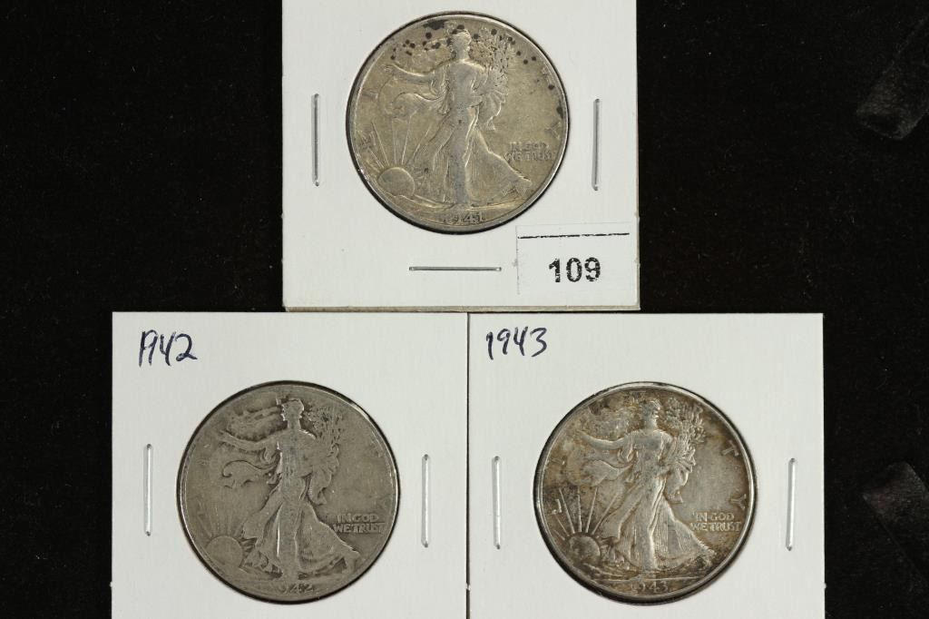 1941-D,42 & 43 WALKING LIBERTY HALF DOLLARS