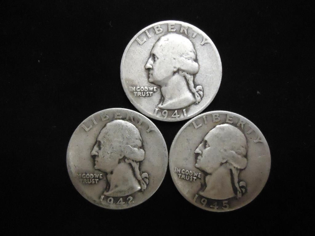 1941-D,42 & 45 WASHINGTON SILVER QUARTERS