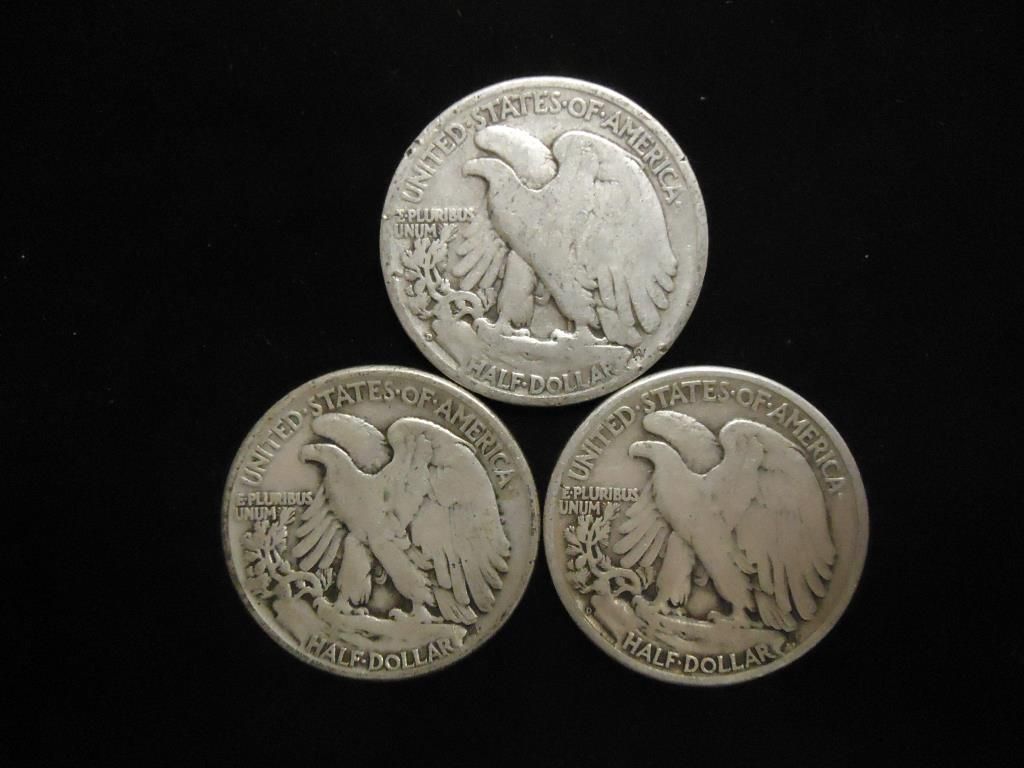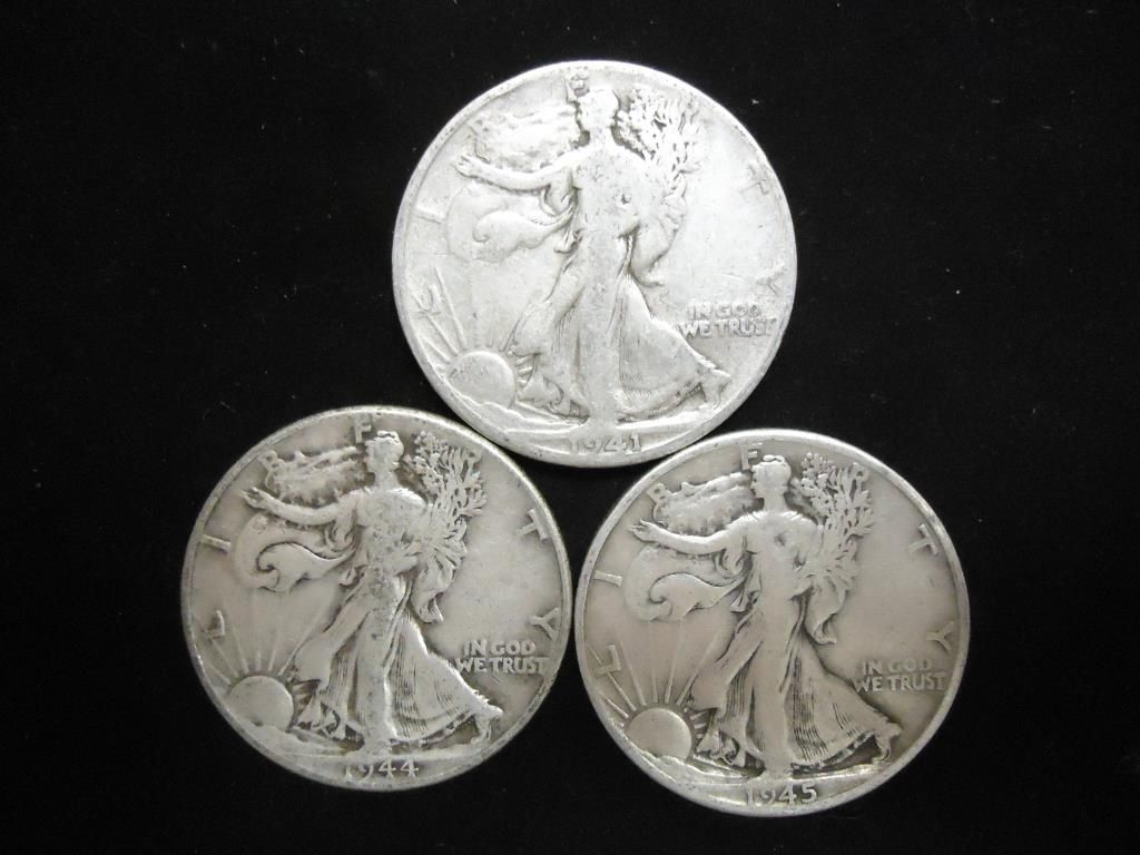 1941-D,44 & 45-D WALKING LIBERTY HALF DOLLARS