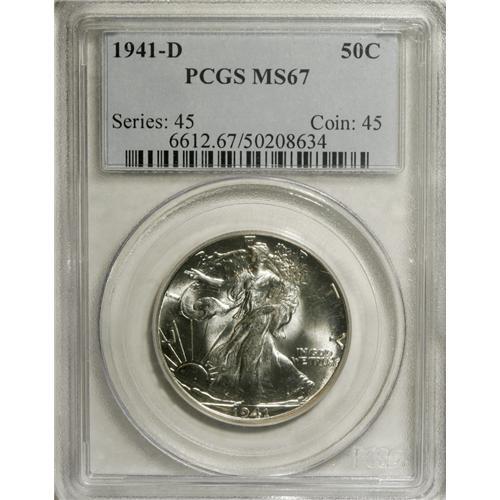 1941-D 50C MS67 PCGS. A well struck and immensely lust