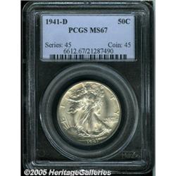 <B>1941-D 50C MS67 PCGS.</B></I> Essentially perfect with no mentionable abrasions on either side. Thick, satiny mint luster covers the fully struck surfaces and there is just the slightest tinge of golden color present.