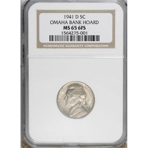 <B>1941-D 5C MS65 Full Steps NGC.</B></I> Ex: Omaha Bank Hoard. NGC Census: (17/158). PCGS Population (0/0). (#74011)<BR><BR><b>Shipping:</b> Coins & Currency (<a target="_blank" href="http://www.heritageauctions.com/common/shipping.php">view shipping information</a>)