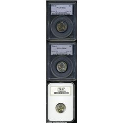 <B>1941-D<5C> MS66 PCGS,</B></I> lovely orange and lilac color, crisply struck and well preserved; <B>1944-S MS66 PCGS,</B></I> gorgeous gold, ruby-red, aqua, and sky-blue patina; and a <B>1945-D MS66 NGC,</B></I> a flashy premium Gem with bright lemon and powder-blue colors. 3 Coins <BR><BR><B>Important notice:</B> Heritage usually auctions material at the rate of 200-250 lots per hour. On some occasions eBay Live bid software or the Internet may not be able to keep up with the pace of the auction. We recommend placing a realistic absentee bid now as insurance to avoid disappointment. Occasionally the auctioneer may eliminate or reject an eBay Live bid, and the auctioneer may also reopen a lot after the close of the eBay live bidding (usually because we missed an audience bid), and may reject your bid even if it shows you as the winning bidder. By bidding via eBay Live, you agree that Heritage may award the lot to another bidder at its sole discretion under the circumstances described above or any other reasonable circumstances. Since eBay bids are not shown to us until we open the lot on the floor, we treat those bids just like floor bids. In most cases the floor responds before the eBay bid is presented to us, due to Internet lag time, so for consistency we have made it a policy that floor bids are always considered first over tie eBay live bids. Also please note that all Heritage lots purchased through eBay Live carry a 20% Buyer's Premium. Please make sure you read the Terms and Conditions before you bid.