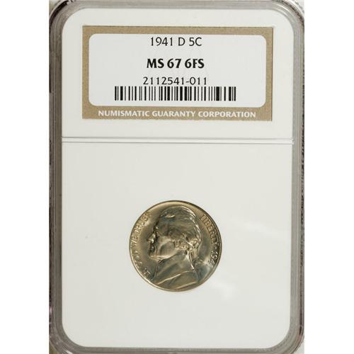 <B>1941-D 5C MS67 Full Steps NGC.</B></I> NGC Census: (61/0). PCGS Population (0/0). (#74011)<BR><BR><b>Shipping:</b> Coins & Currency (<a target="_blank" href="http://www.heritageauctions.com/common/shipping.php">view shipping information</a>)