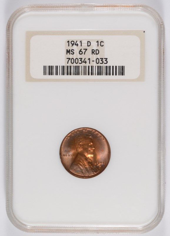 1941-D LINCOLN CENT, NGC MS-67! RED! RARE!!