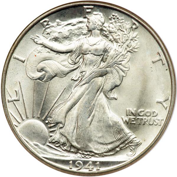 1941-D Liberty Walking Half Dollar. NGC graded MS-67. A well struck frosty white superb gem example.