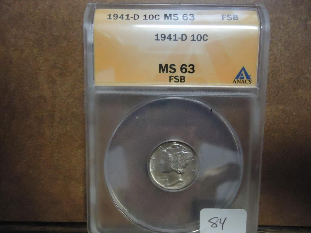 1941-D MERCURY DIME ANACS MS63FSB