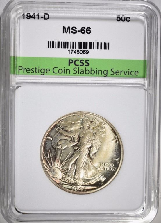1941-D WALKING LIBERTY HALF, PCSS SUPERB GEM BU ESTIMATE $150 - $160.