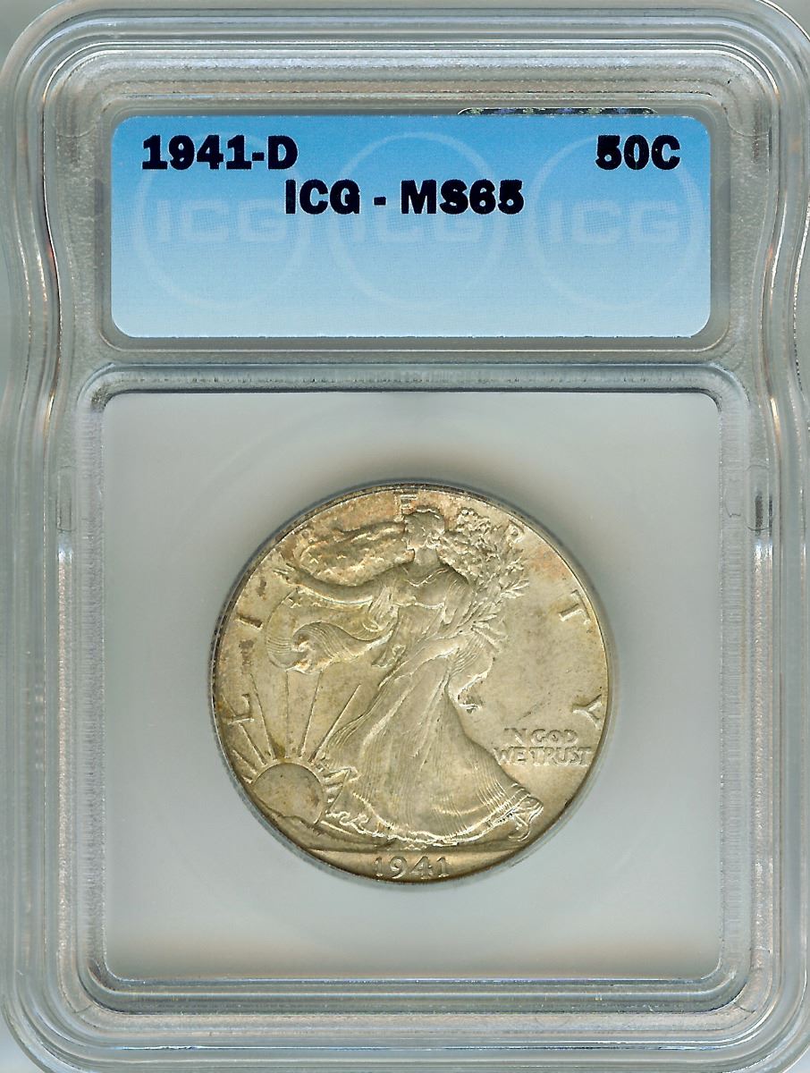 1941-D WALKING LIBERTY SILVER 50 CENTS ICG MS65