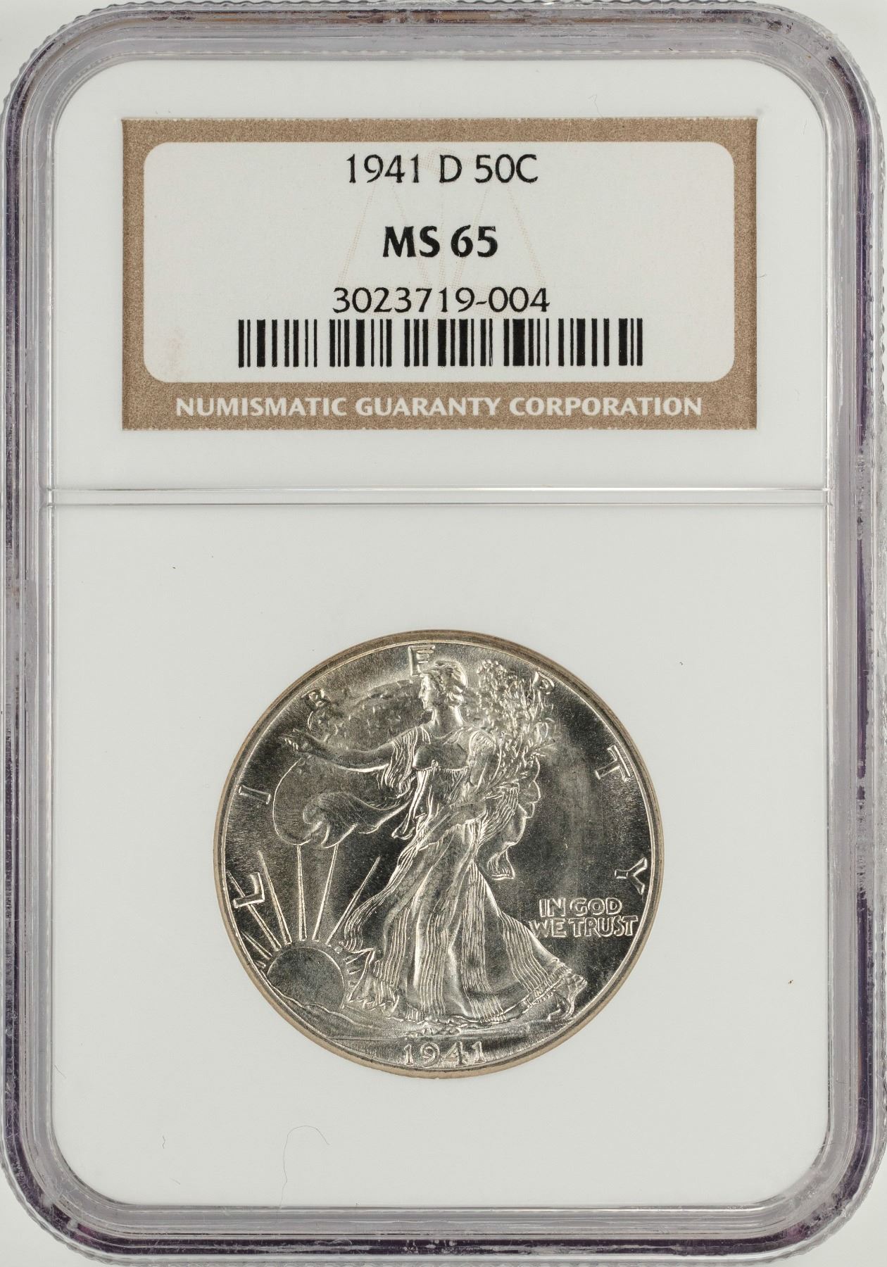 One 1941-D Walking Liberty Half Dollar Coin NGC MS65.