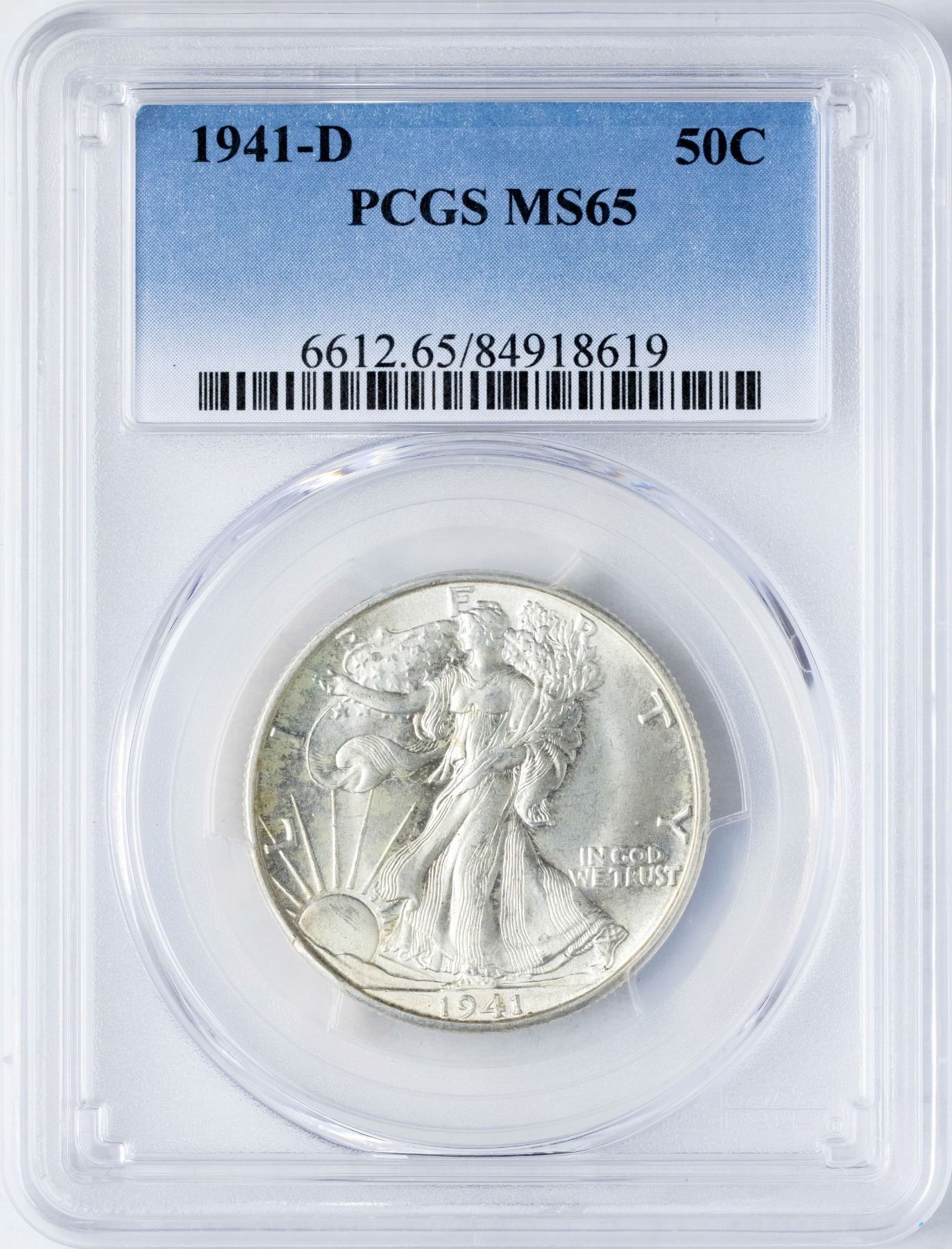 One 1941-D Walking Liberty Half Dollar Coin PCGS MS65.